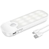 A compact, USB-rechargeable LED light that senses motion up to 3 metres and brightens dark corners with a warm, eye-friendly glow. Three modes (Auto/On/Off) let you choose motion-activated lighting, continuous illumination, or complete off for battery saving. Magnetic strip plus strong 3M adhesive make tool-free mounting and effortless removal for charging or handheld use. Built-in 350 mAh battery and low 24-lumen output deliver long runtime and gentle, practical illumination for wardrobes, stairs and hallways.